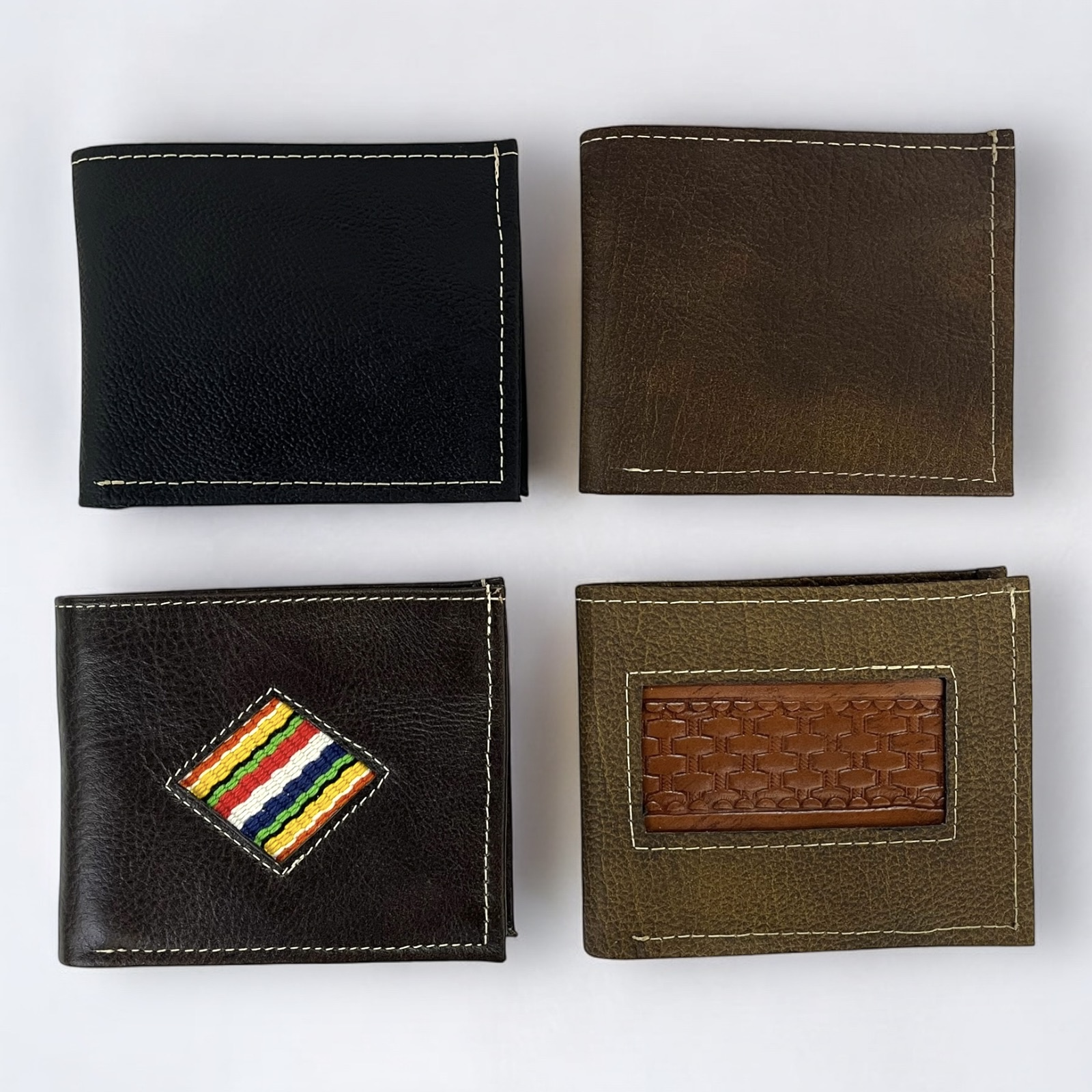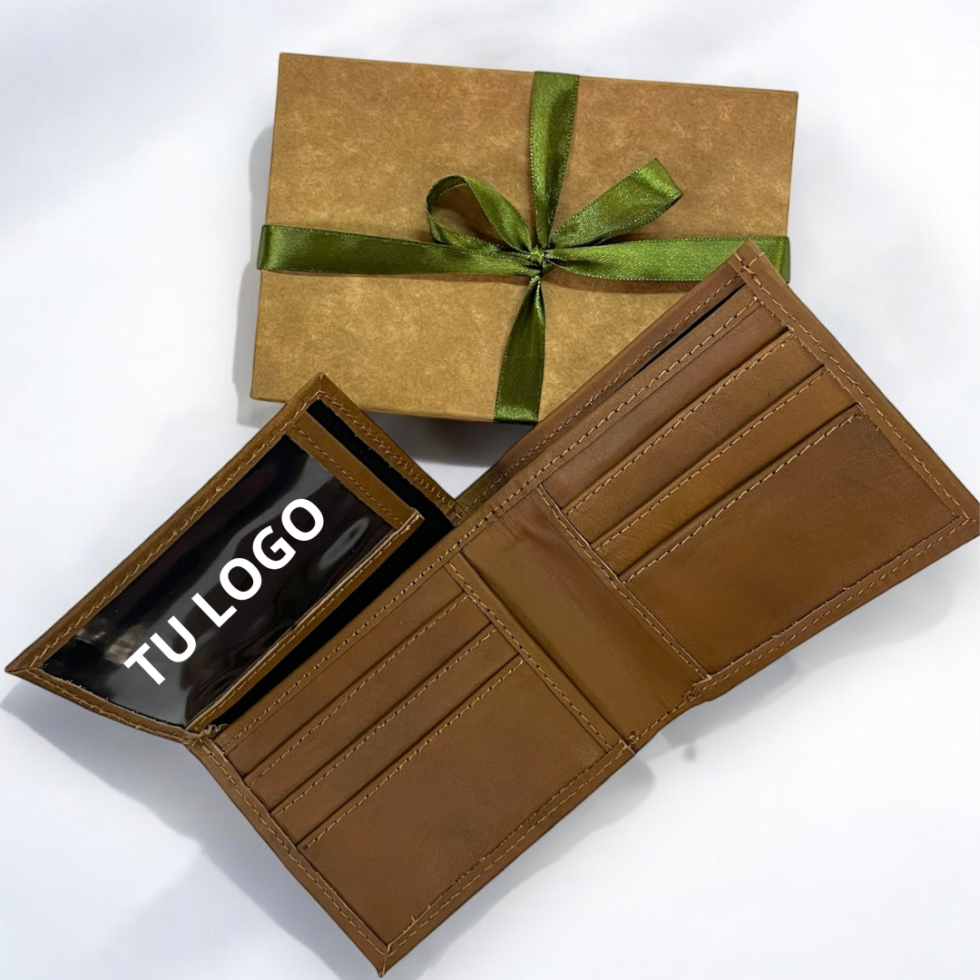 Billetera para caballero de cuero repujado hecho a mano. Logo a laser costo aparte.