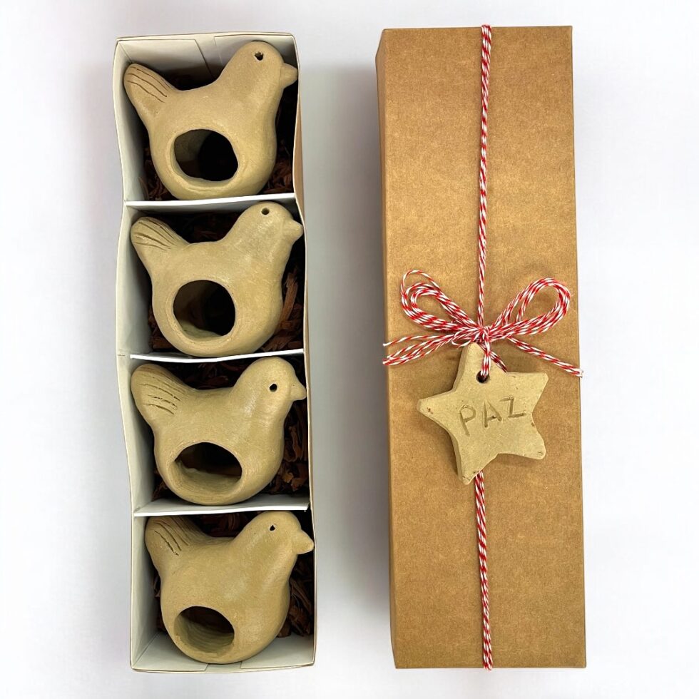 Contiene:Caja 15.000, Juego de 4 Servilleteros de Palomitas en cerámica hecho a mano 15.000 c/u , Adorno Estrella en Cerámica 5.000