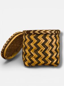 Cesto confeccionado artesanalmente por la parcialidad Mby´a con de hojas de guembepi. Medida: 24cm de altura.