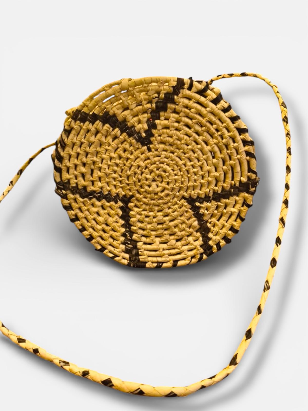 Cesto confeccionado artesanalmente por la parcialidad Mby´a con de hojas de guembepi. Medida: 28cm de altura.