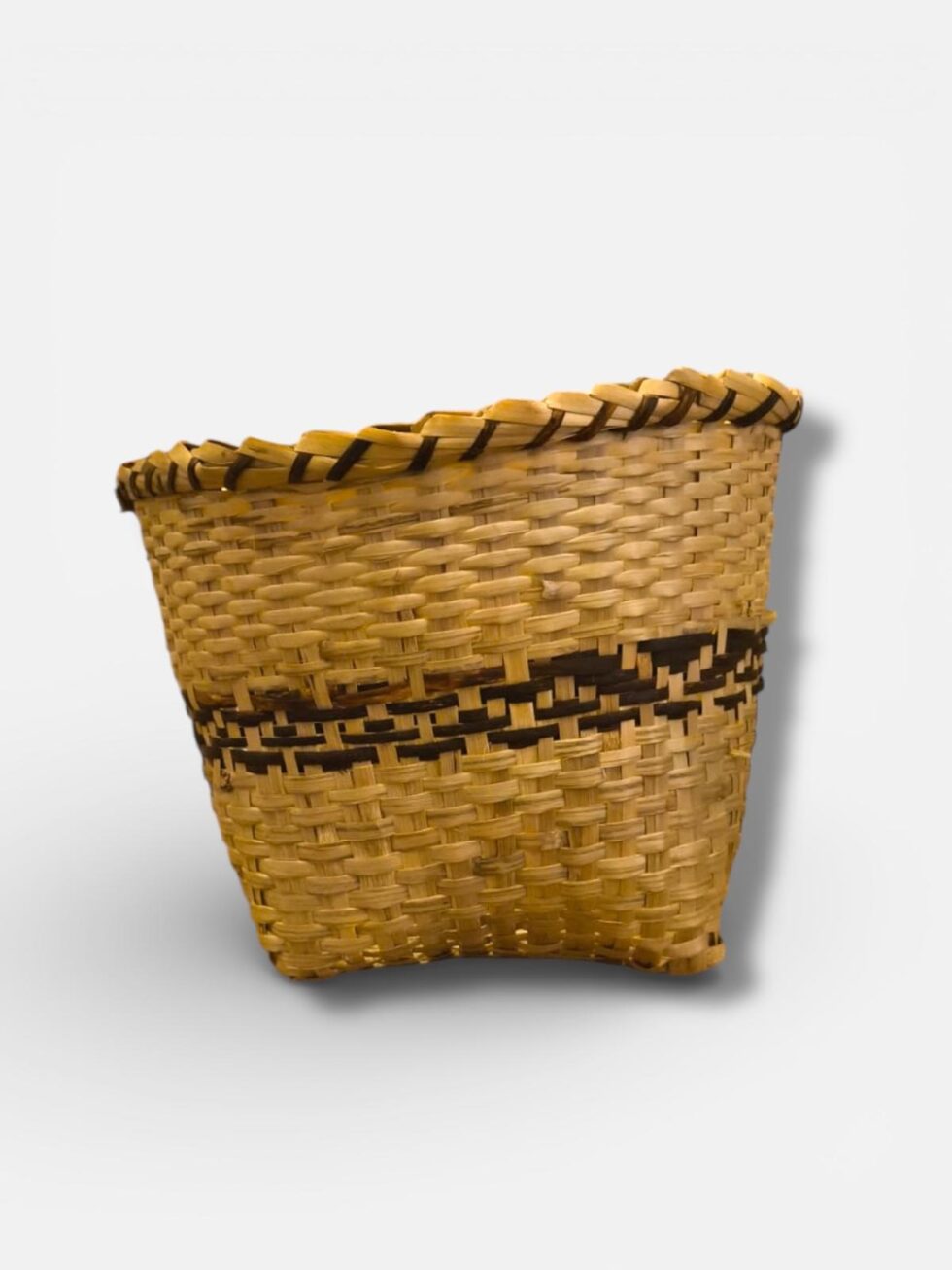 Cesto confeccionado artesanalmente por la parcialidad Mby´a con de hojas de guembepi. Medida: 17cm de altura.