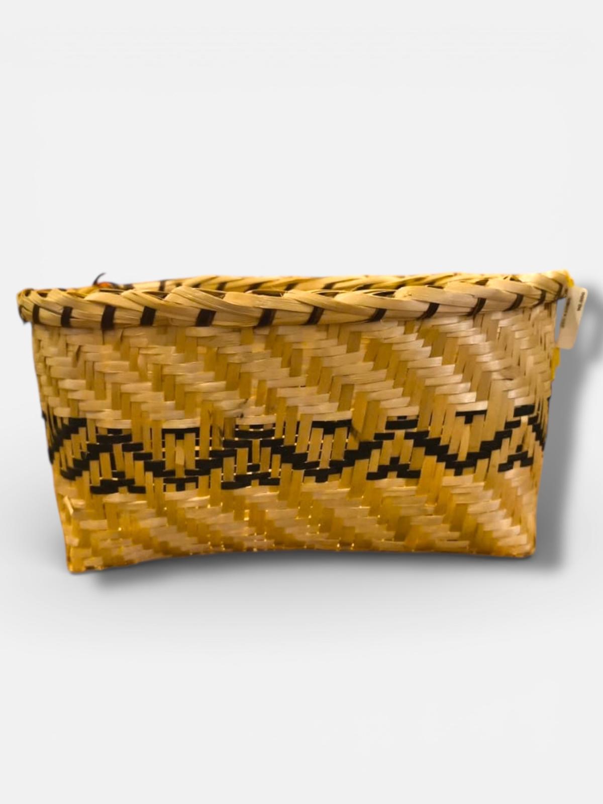 Cesto confeccionado artesanalmente por la parcialidad Mby´a con de hojas de guembepi. Medida: 14cm de altura.