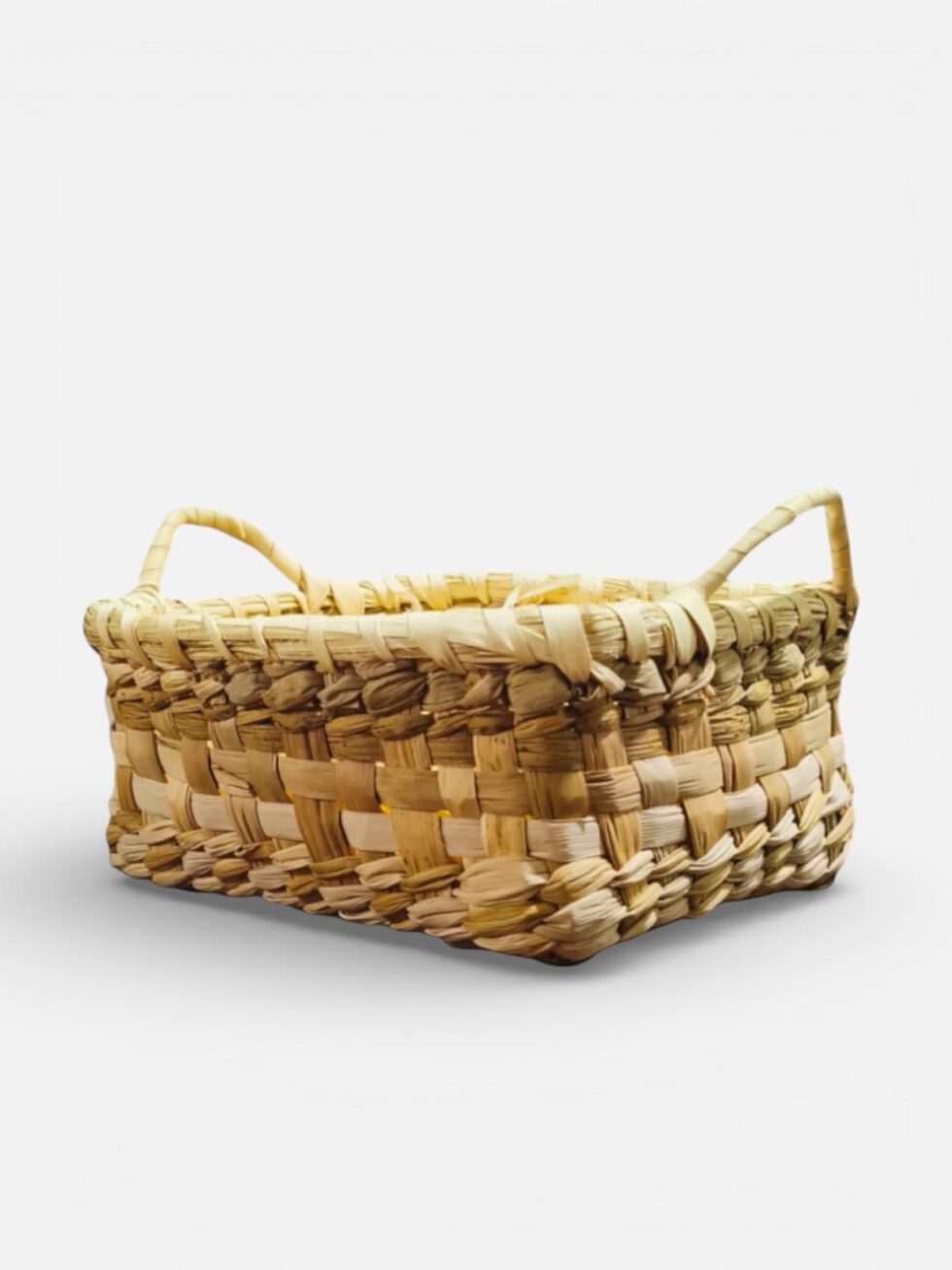 Cesto confeccionado artesanalmente con de hojas de palma. Medidas: Ancho 25cm alto 7cm
