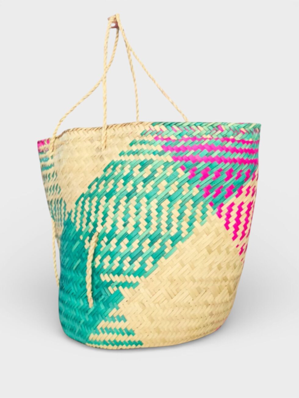 Cesto confeccionado artesanalmente con de hojas de palma. Medida: 29cm de altura.
