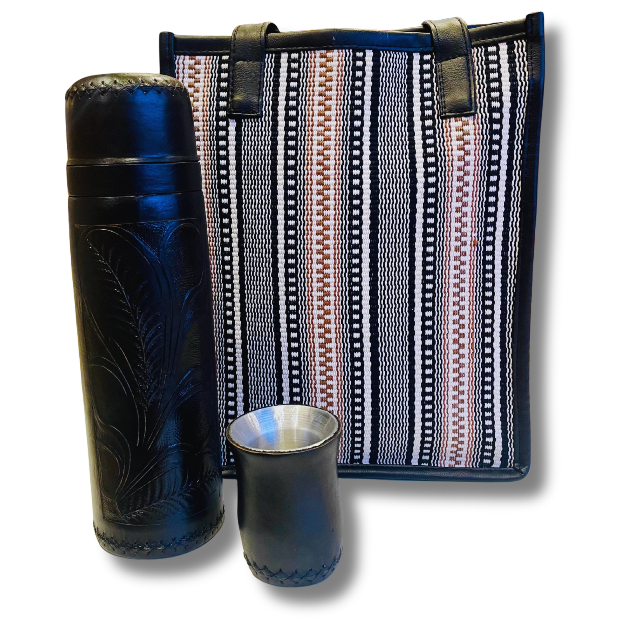 Termo de mate forrado en cuero con mate de aluminio forrado en cuero GS 355.000